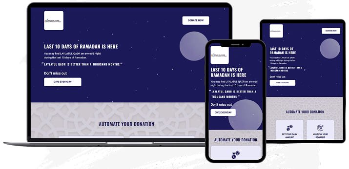 With our easy-to-use landing page, donors can select donation amounts, choose specific days, and set up automatic contributions. This system ensures that you never miss an opportunity to donate during these sacred nights. Whether through social media, email, or direct links, the process is seamless and designed to maximize engagement and convenience. Let Masjid Solutions help you give effortlessly during Ramadan, ensuring your contributions are counted each day of the last ten nights.